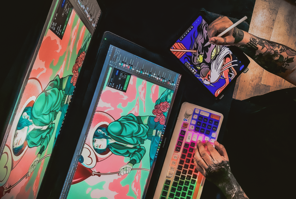 A lo largo de mi trayectoria he colaborado con clientes nacionales e internacionales, desarrollando ilustraciones pensadas para vivir más allá de la pantalla: desde entornos digitales hasta impresión, merch y formatos a gran escala. Mi enfoque parte del proceso, el detalle y la funcionalidad, sin perder el carácter expresivo que define cada proyecto.